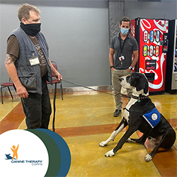 Canine Therapy Corps regularly visits Haymarket and works with patients from our Men’s and Women’s Integrated Treatment programs to provide dog therapy services. Through a six-week curriculum, patients work with the dogs on progressively advanced obedience and agility, culminating in a graduation where each participant demonstrates proficiency in dog handling.